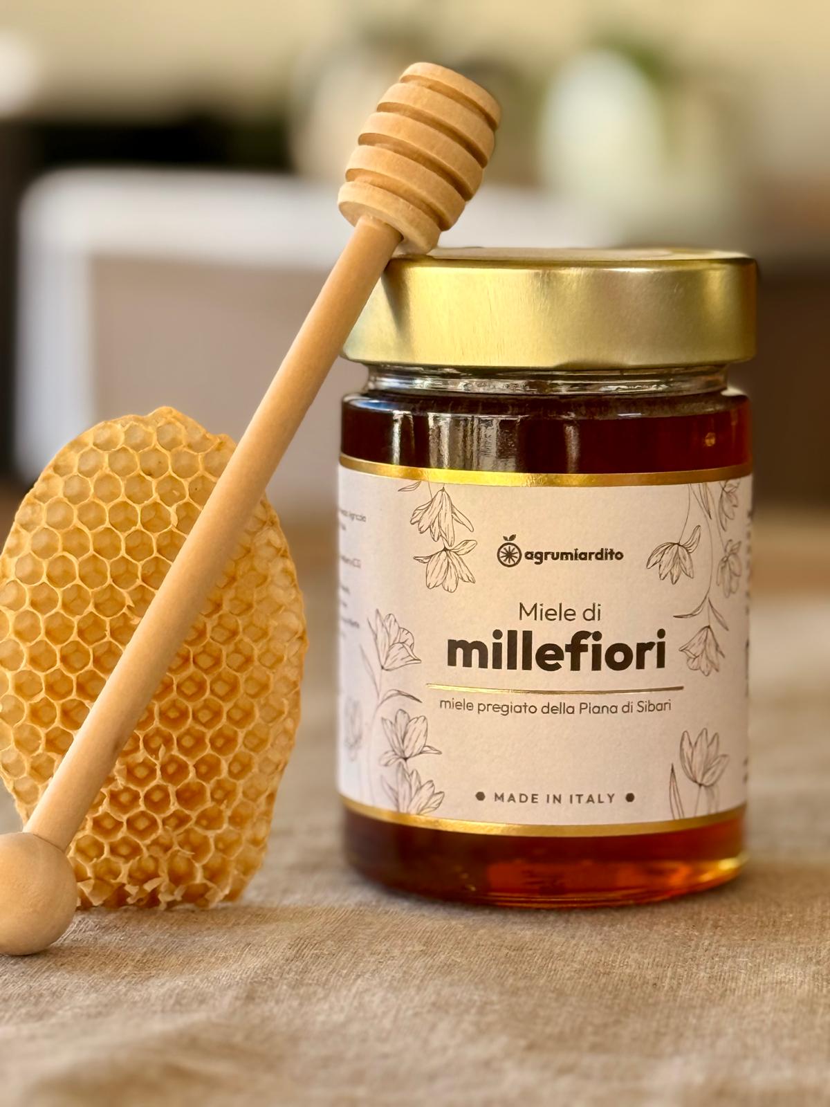 Scopri la ricchezza del nostro Miele Millefiori, un vero dono della natura che racchiude i profumi e i sapori della biodiversità dei nostri campi. Le api raccolgono il nettare da una grande varietà di fiori spontanei che sbocciano nella Piana di Sibari, dando vita a un miele dal carattere complesso e armonioso, capace di regalare ogni volta sfumature diverse e sorprendenti.